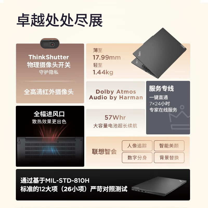 商品名称:ThinkPad 联想 E14/E16笔记本电脑 锐龙版 商务办公学生网课娱乐轻薄本 店铺爆款 14英寸 R7-7735H 16G 1T