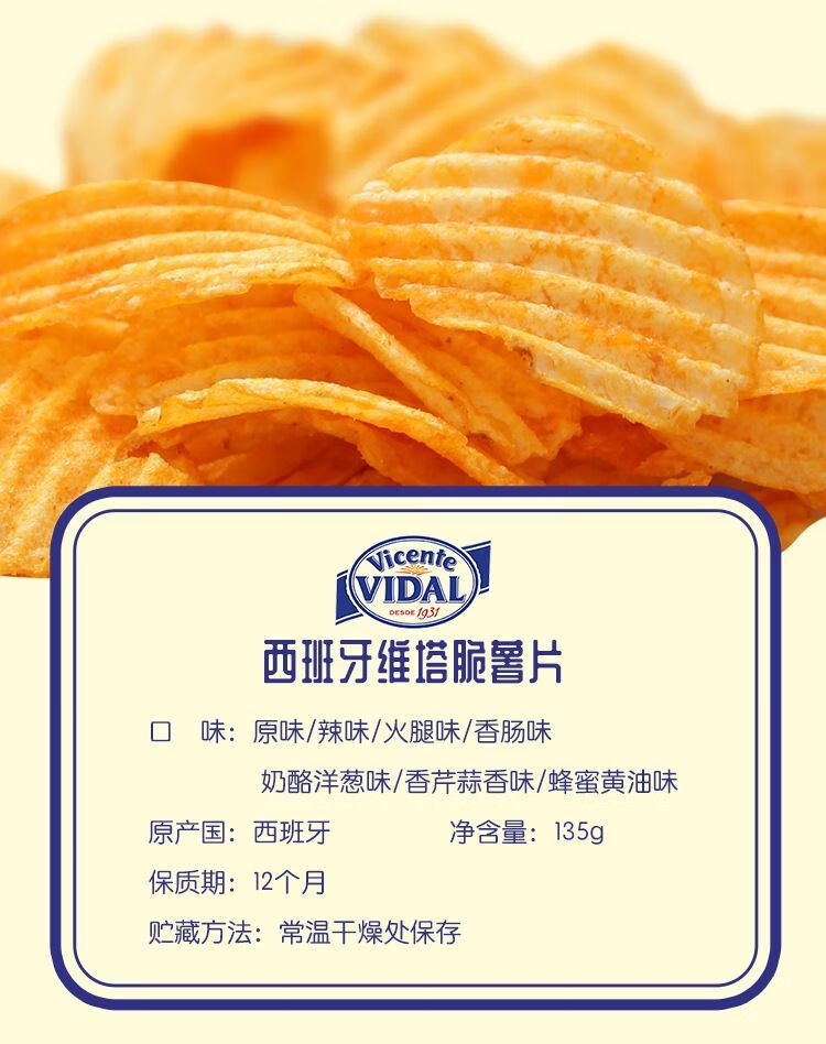 商品名称:VIDAL薯片(蜂蜜黄油味)125g*2 西班牙产