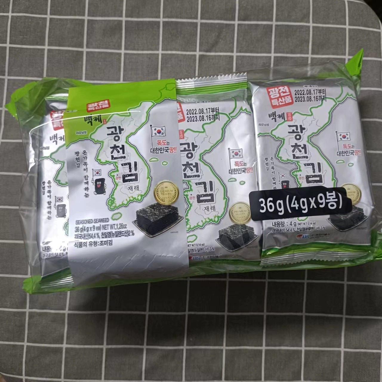 商品名称:百济广川韩国海苔12g*2 韩国产