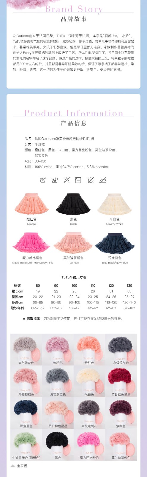 商品名称:Q.cutians TUTU儿童半裙 米白冰淇淋 80-130码 下单备注码 偏远另加运费
