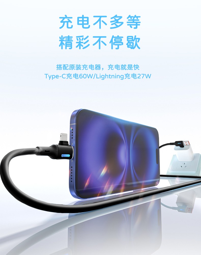 采用双接口设计,一线多用,不挑机型; 智能控温技术,打破发热定律,全程低温速充