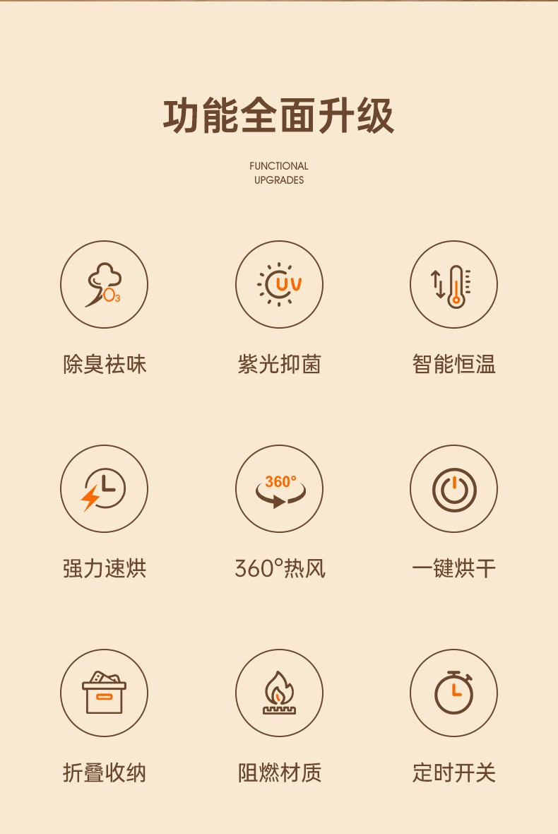 15s快速制热,2h烘干 折叠伸缩 智能恒温 紫外照射一重杀菌,臭氧模式二重抑菌