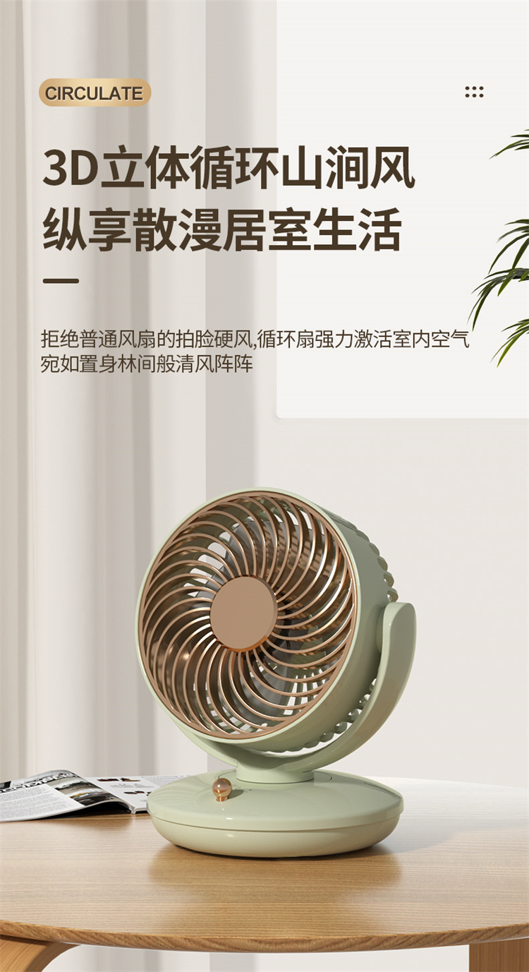 六竖桌面循环风扇UY5-18 米 白色/绿色 6972468720469