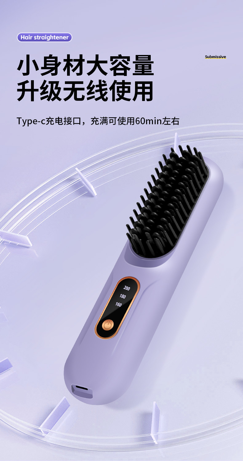小巧便携 三档温度控制160/180/200℃ 3min快速直发 一梳即顺,抚平毛躁