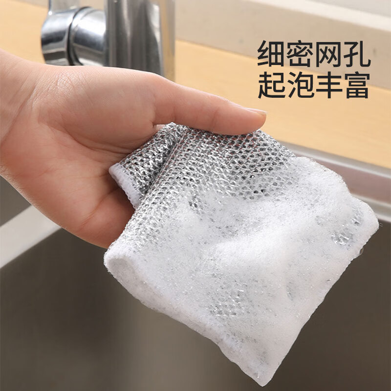 美丽雅钢丝抹布替代钢丝球厨房双层刷锅神器洗碗不易掉丝去污清洁布6片 6923074097025 偏远另加运费