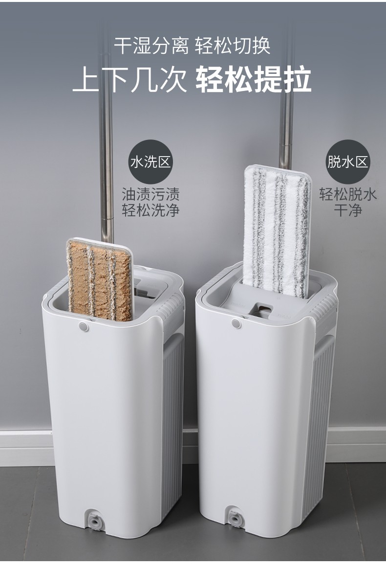 美丽雅净好运挤水拖把家用免手洗懒人平板地拖桶38厘米刮水墩布拖地神器 6923074081048 偏远另加运费