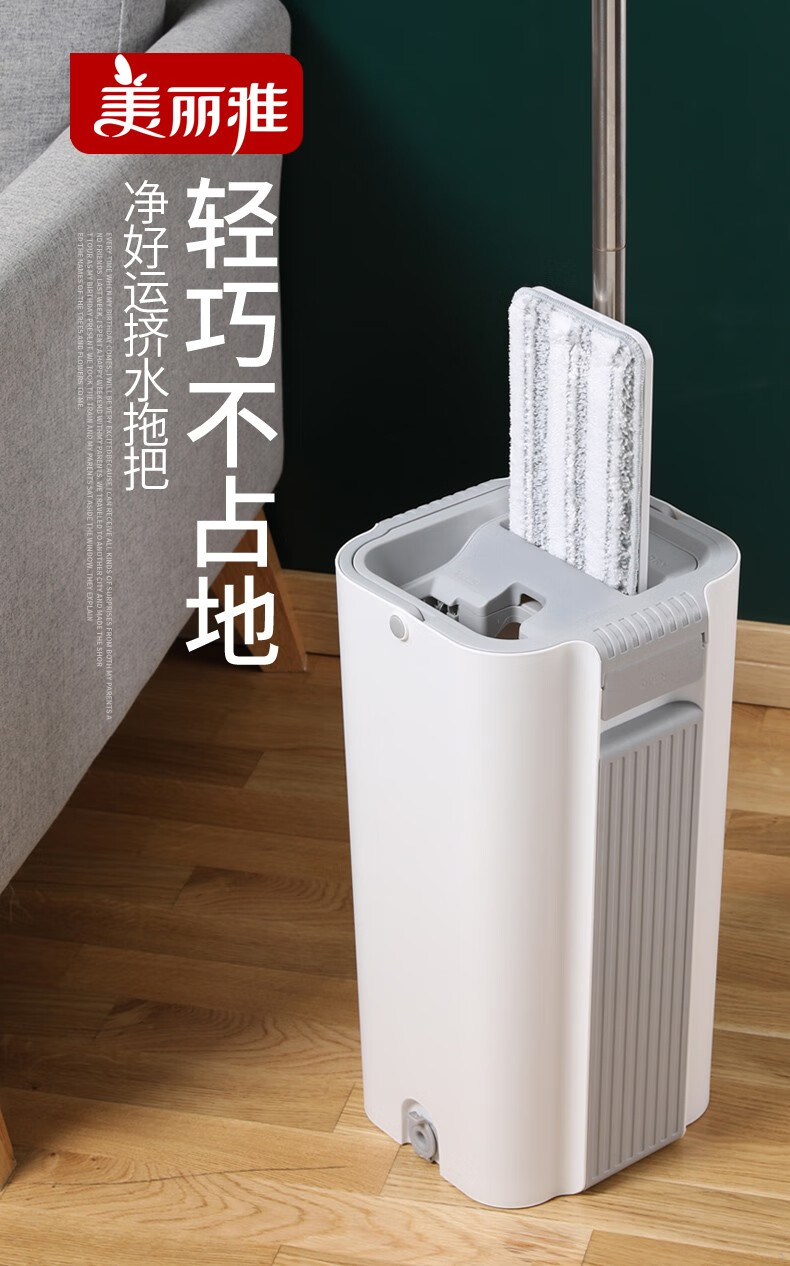 商品名称:美丽雅净好运挤水拖把家用免手洗懒人平板地拖桶38厘米刮水墩布拖地神器 6923074081048 偏远另加运费
