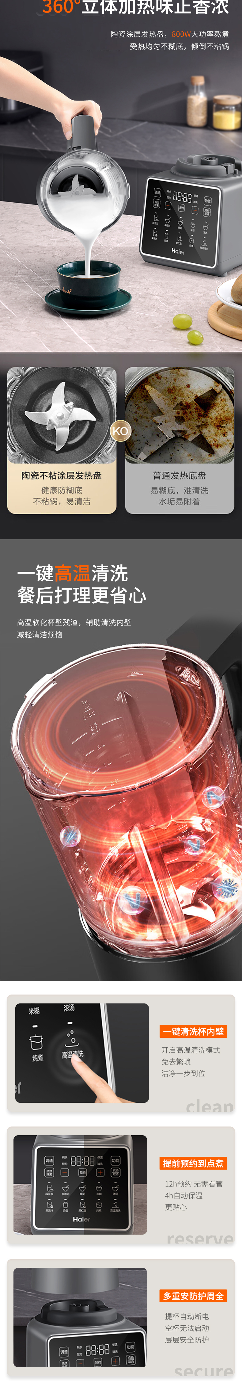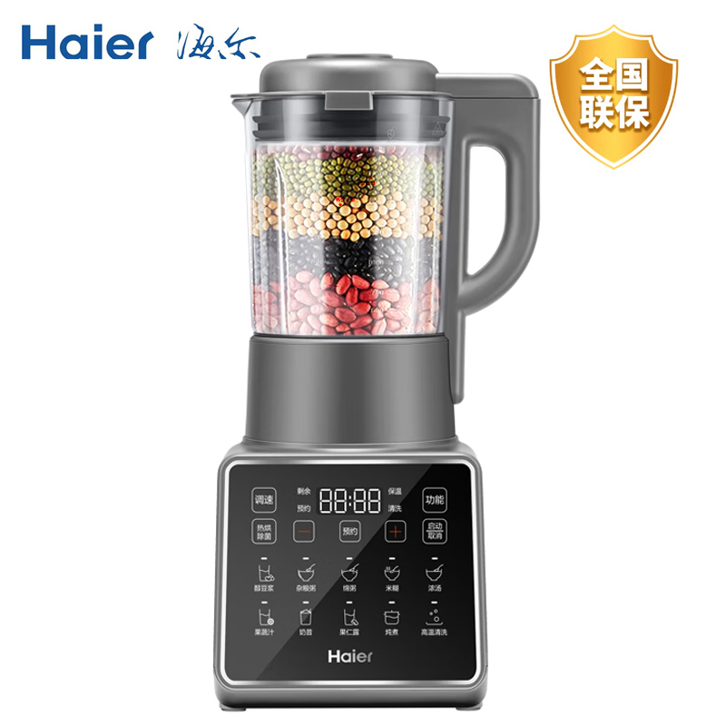 商品名称:J- 海尔Haier 智能触控彩屏破壁机 冷热双打1.75升大容量 双层6叶精钢刀头家用大动力 多功能破壁料理机辅食机豆浆机 星蕴银HPB-X117ZDS