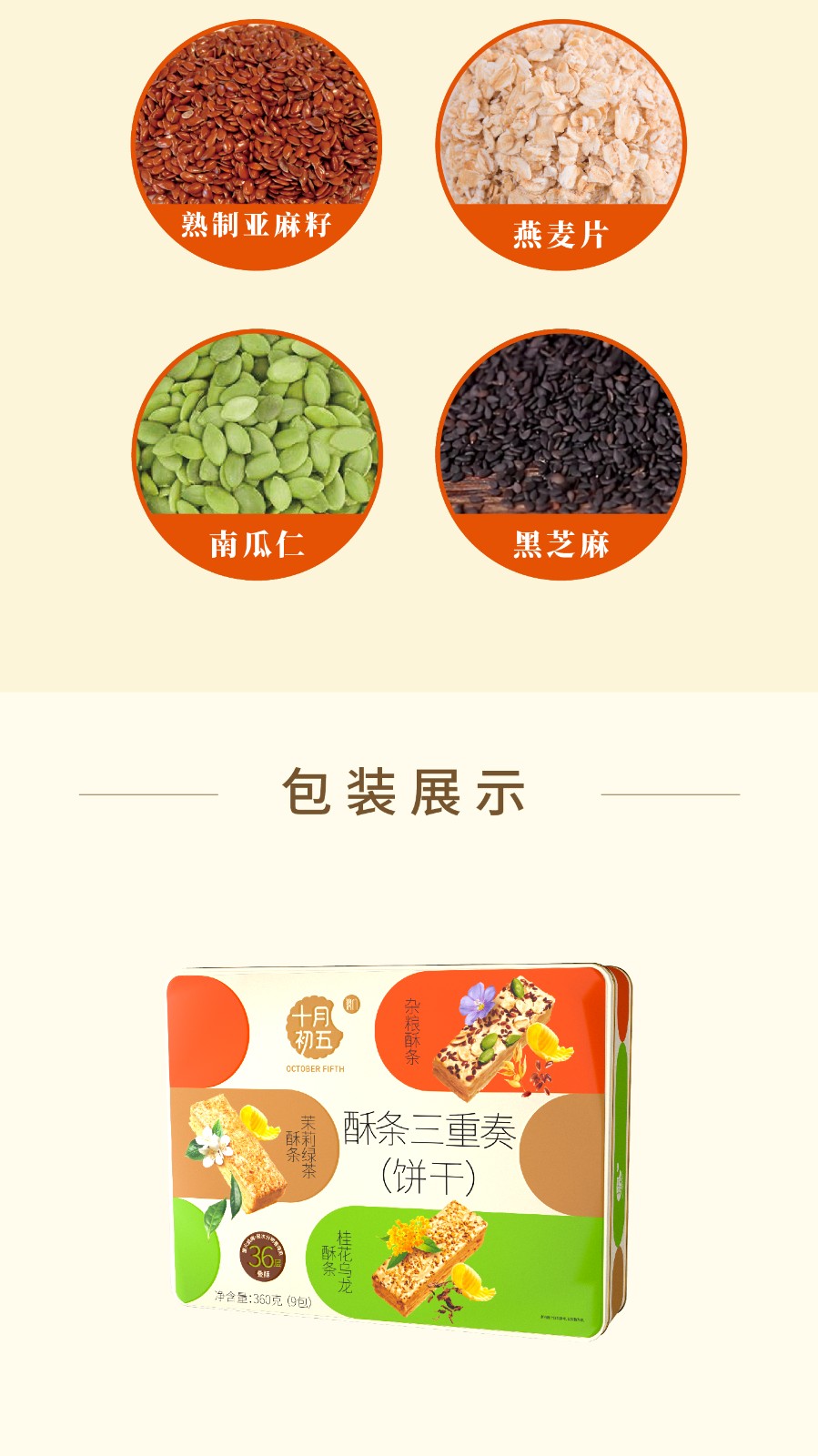 商品名称:十月初五酥条三重奏 360g(铁盒) 6935133810841 偏远另加运费
