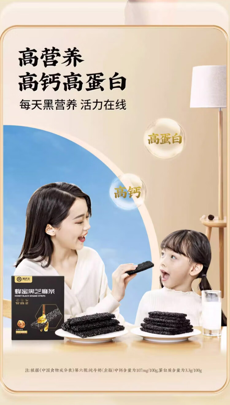 商品名称:黄老五 蜂蜜黑芝麻条(原味)100g*3盒