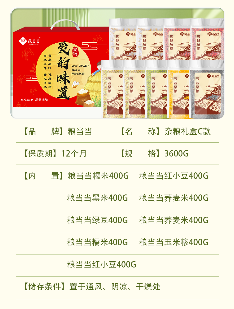 商品名称:粮当当杂粮礼盒C款 3600g 新疆西藏需另加运费