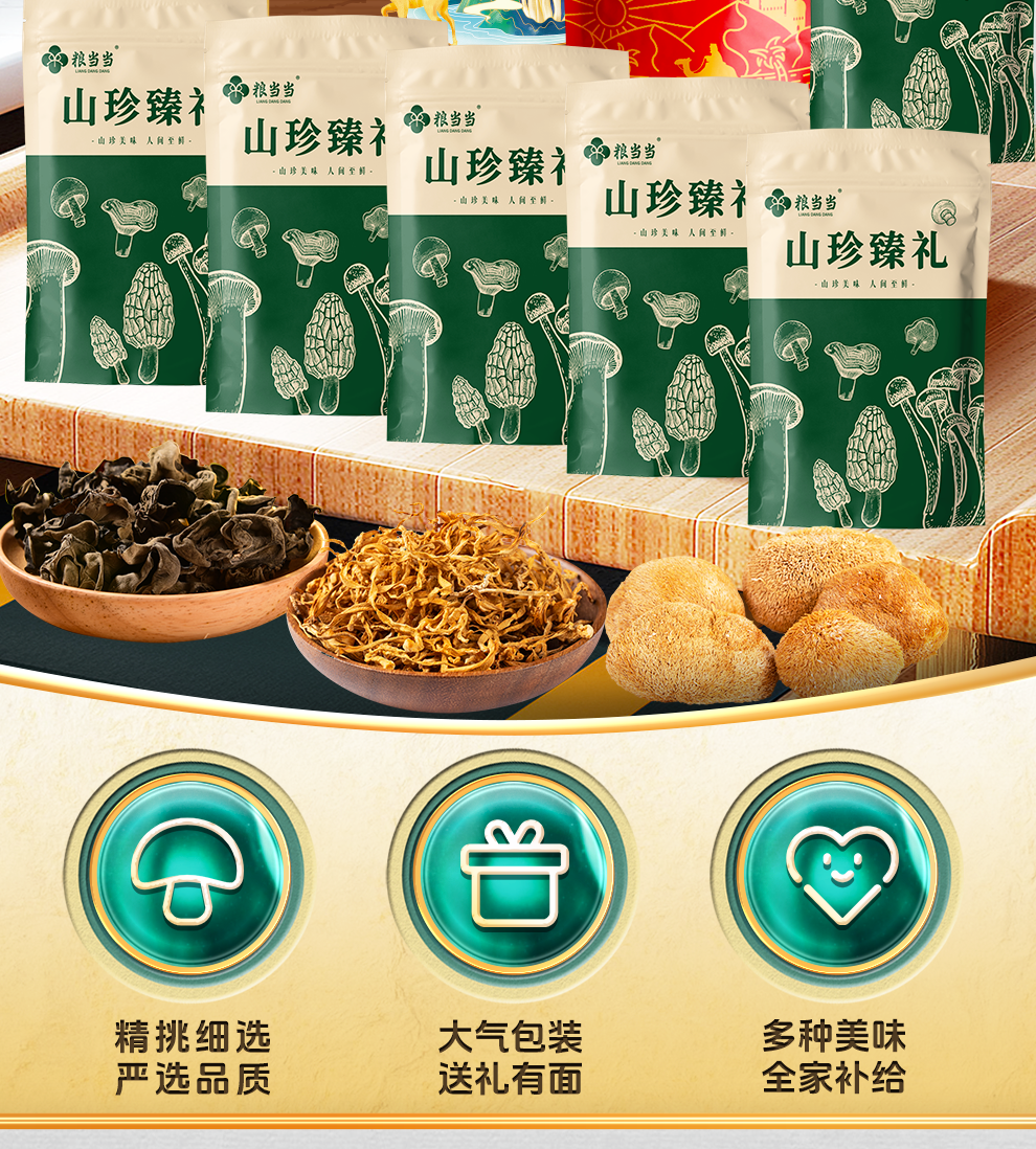粮当当山珍菌菇礼盒 山珍礼盒C款 1220g 新疆西藏需另加运费
