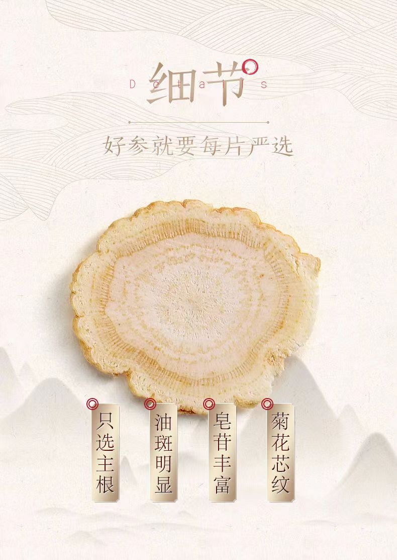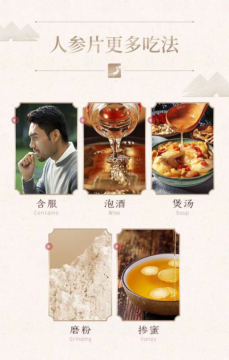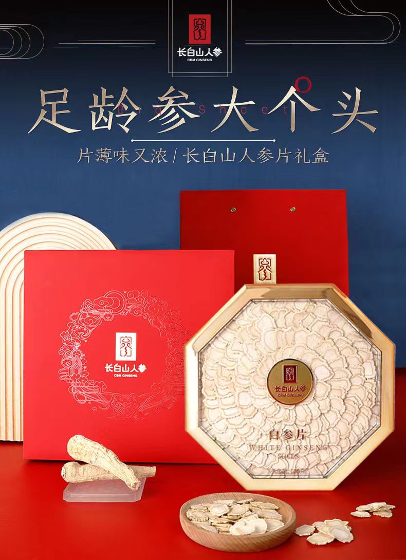 商品名称:长白山人参 白参片八角亚克力礼盒100g 6970044562724