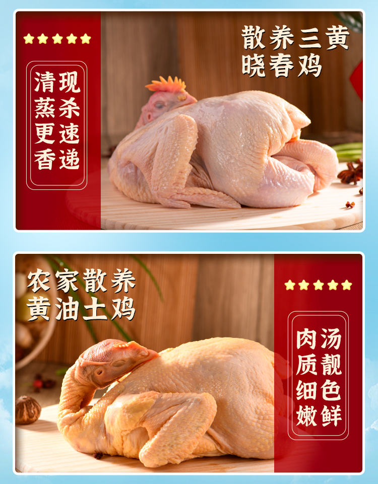 大江冷鲜农家散养黄油土鸡(冷鲜)1200g*1