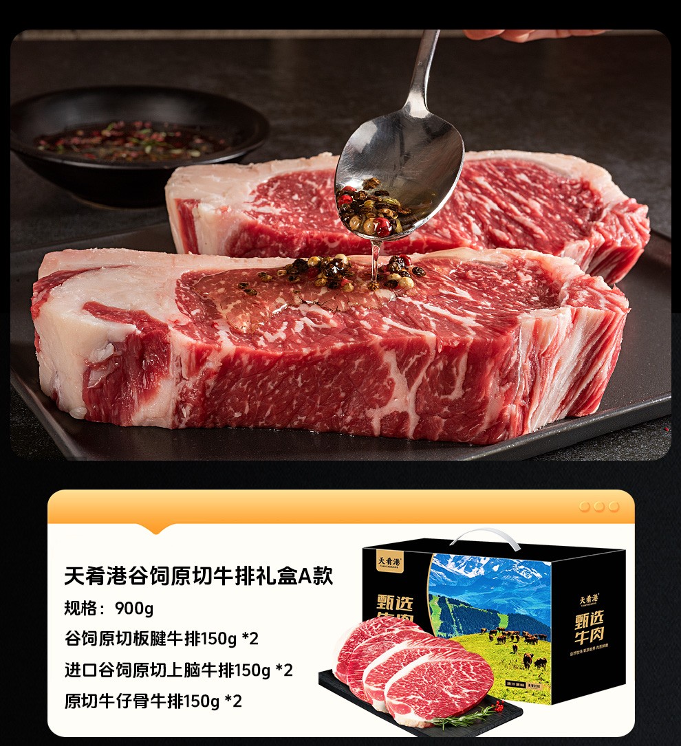 商品名称:天肴港 谷饲原切牛排礼盒 谷饲原切牛排900g