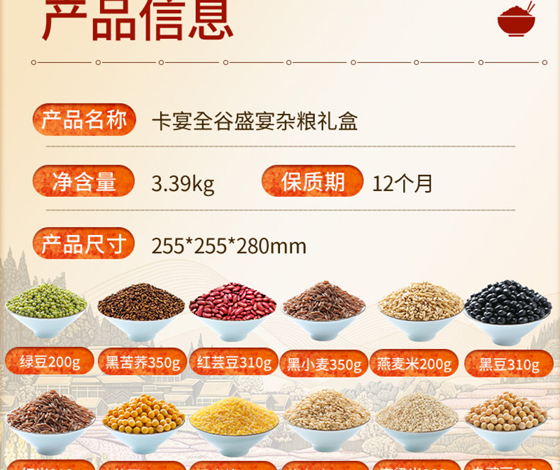 商品名称:卡宴全谷盛宴杂粮礼盒3390g 6974646727680 偏远另加运费