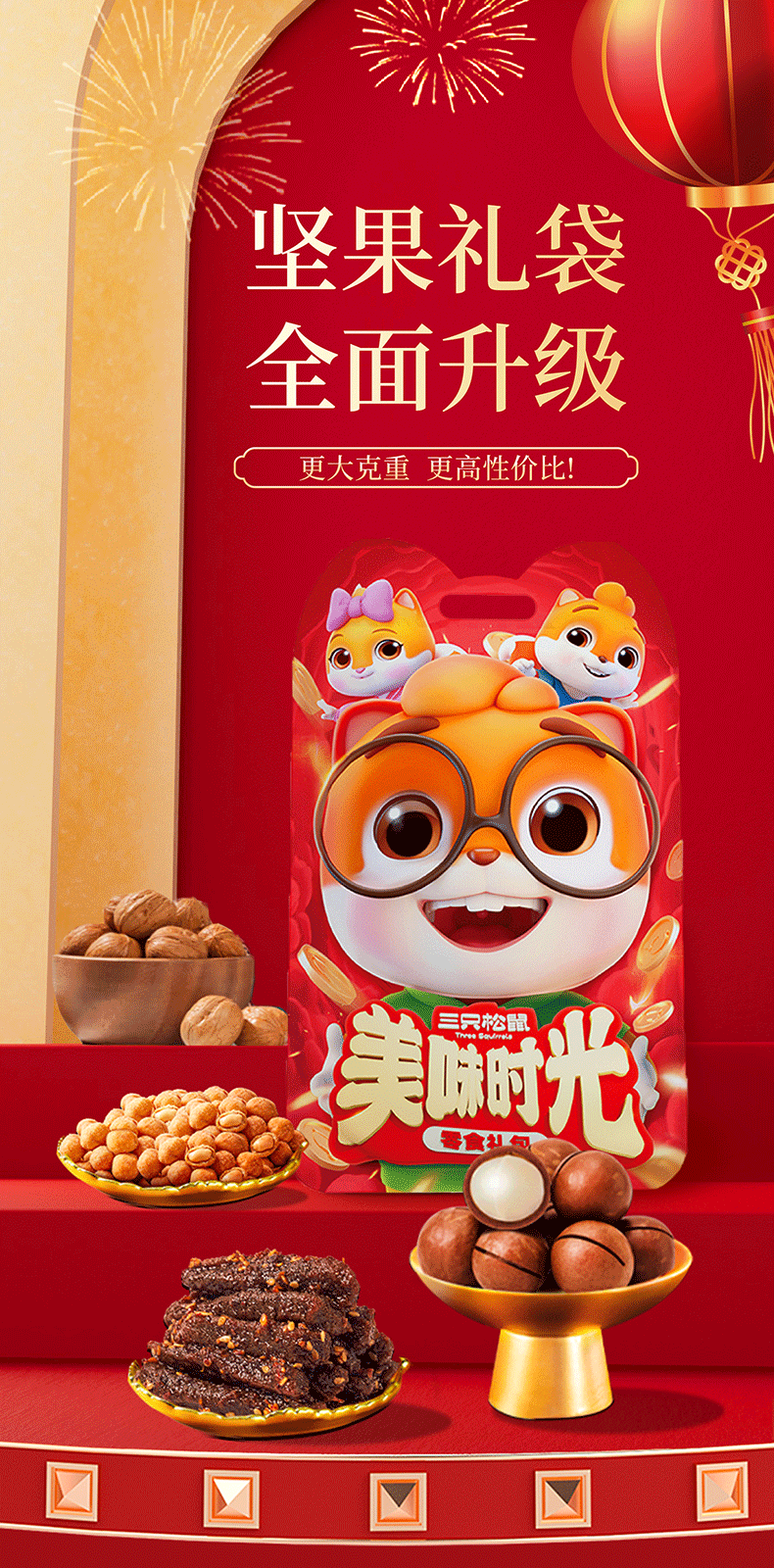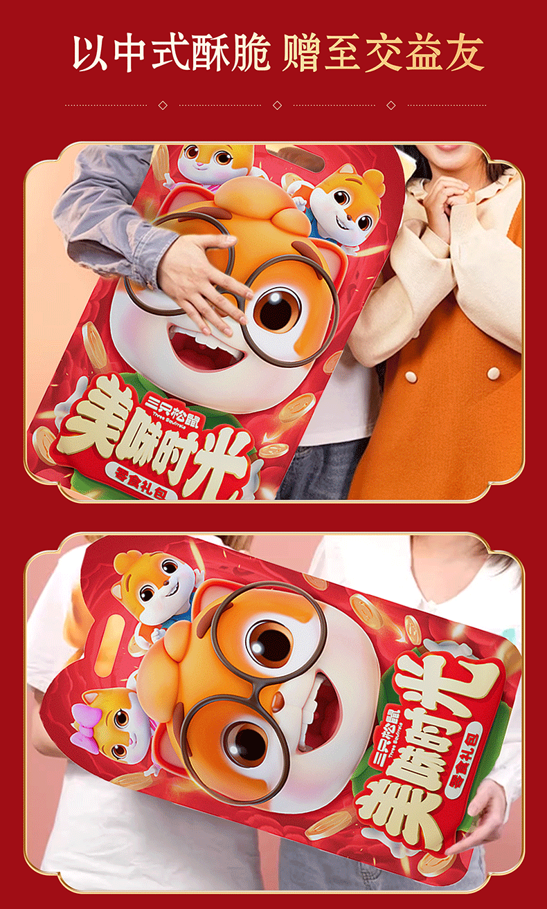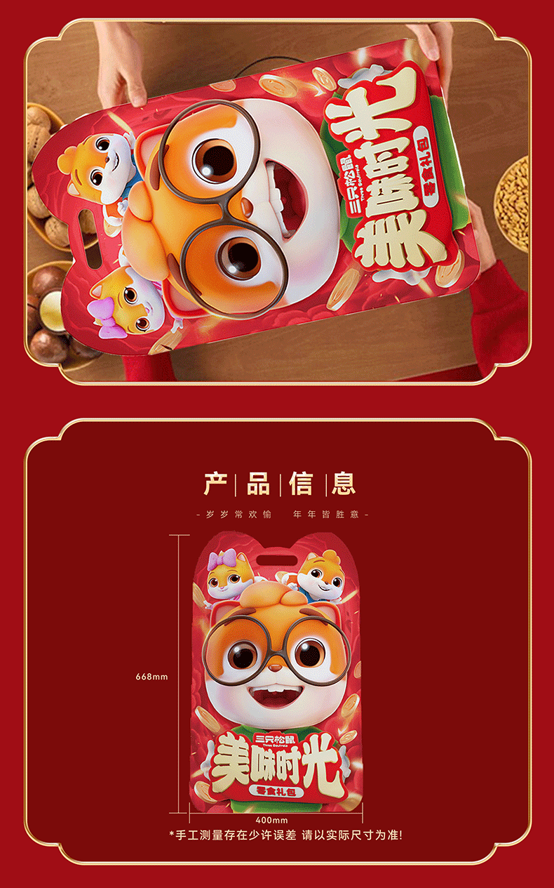 商品名称:三只松鼠108型美好时光零食礼 坚果 1230g/10袋——礼袋版 6942209619932