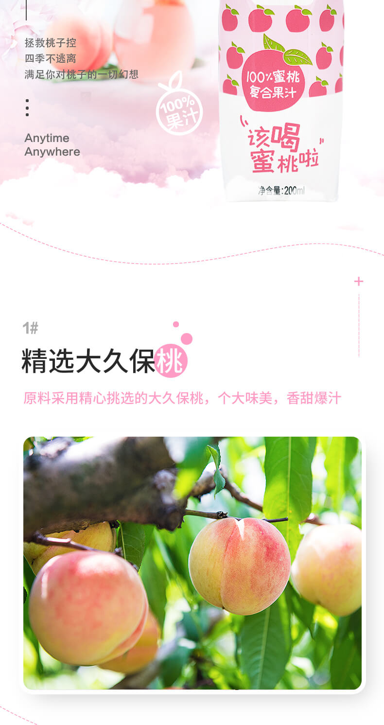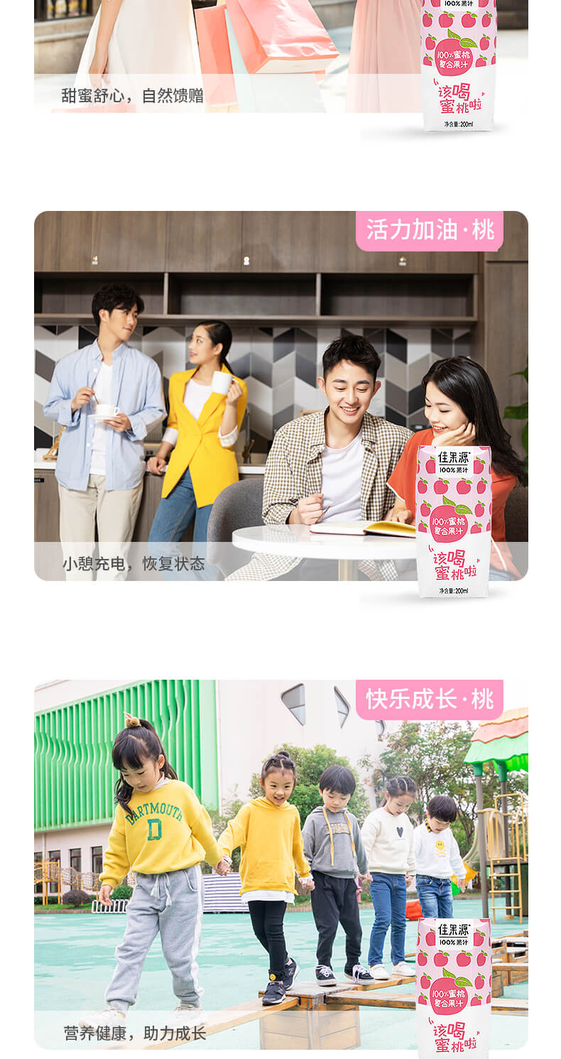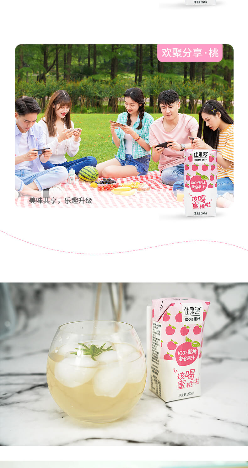 商品名称:佳果源100%蜜桃复合果汁200ml*24 6972303251837