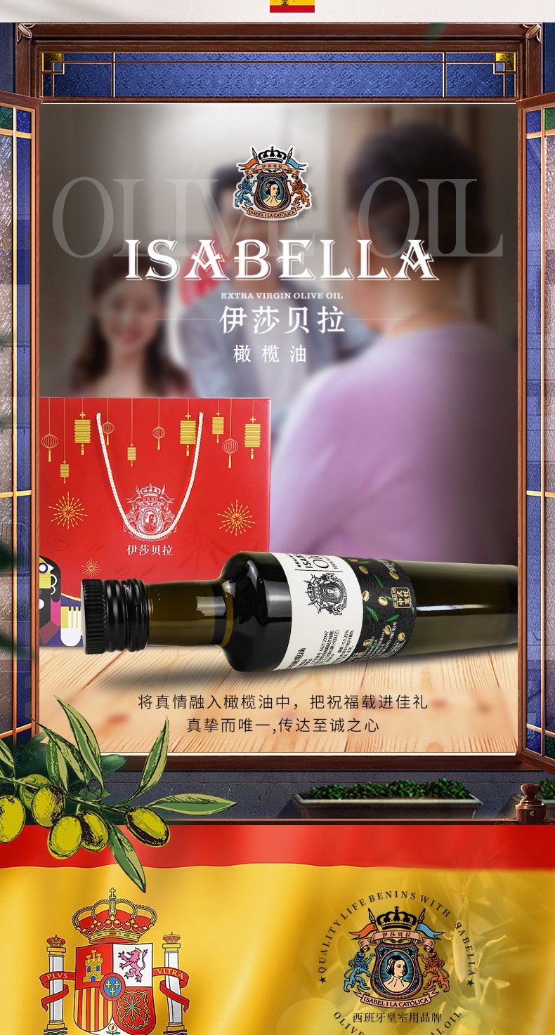 商品名称:伊贝拉 ISABELLA-定制款欢天喜地 特级初榨橄榄油500ml*2 6957736190212