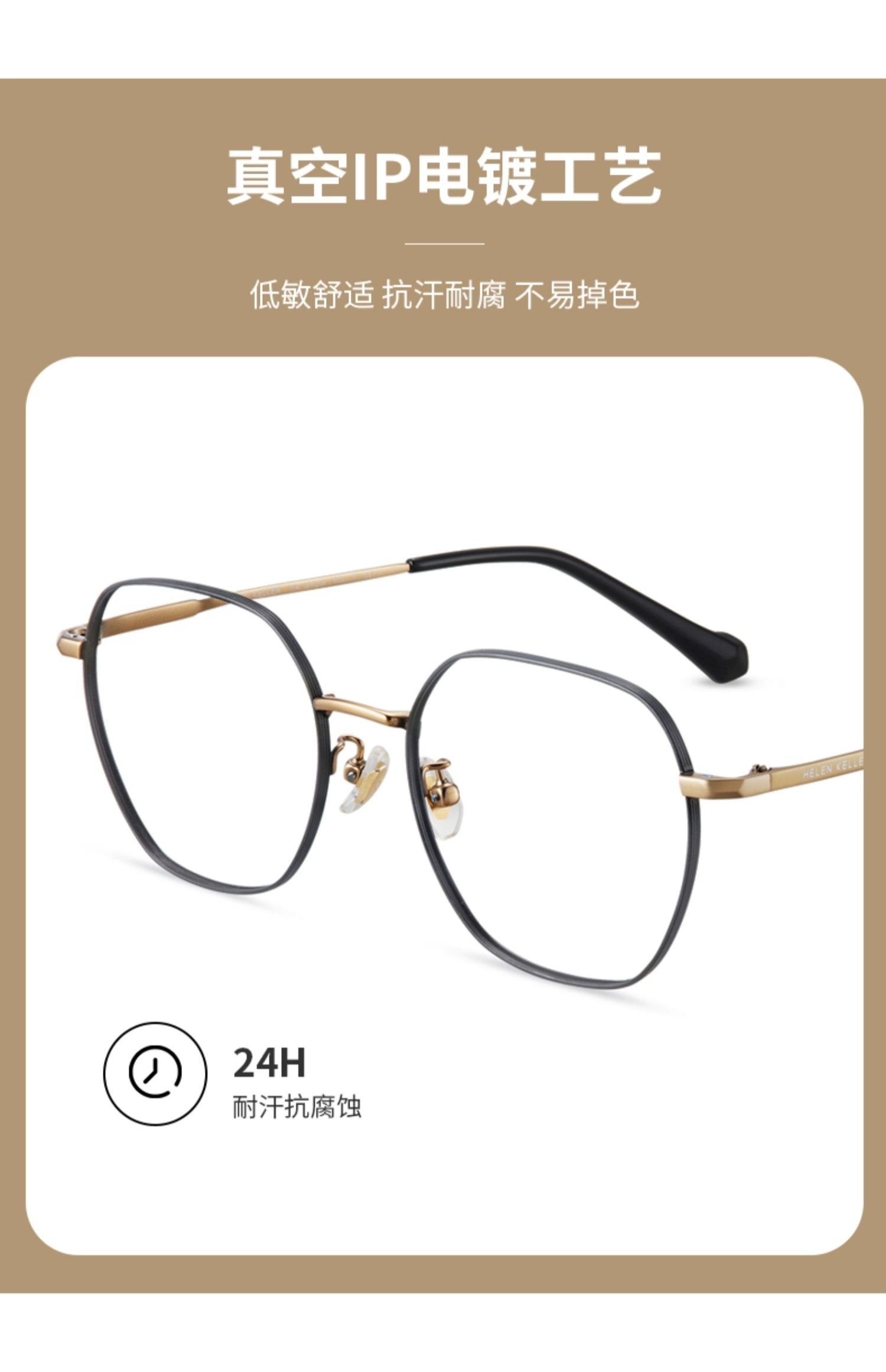 商品名称:【博主推荐】海伦凯勒新品轻弹修颜多边可配度数近视眼镜框H85053C2M/8M-FLG