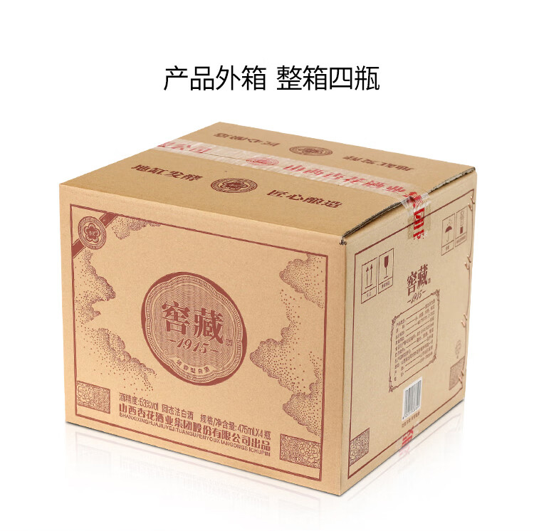 商品名称:杏花集团53度窖藏1915清香型475ml*4瓶整箱