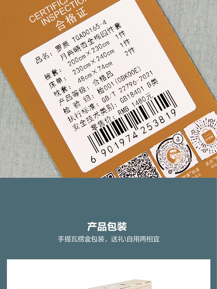 商品名称:罗莱 月冉晓杏全棉四件套 200*230cm 6901974253819