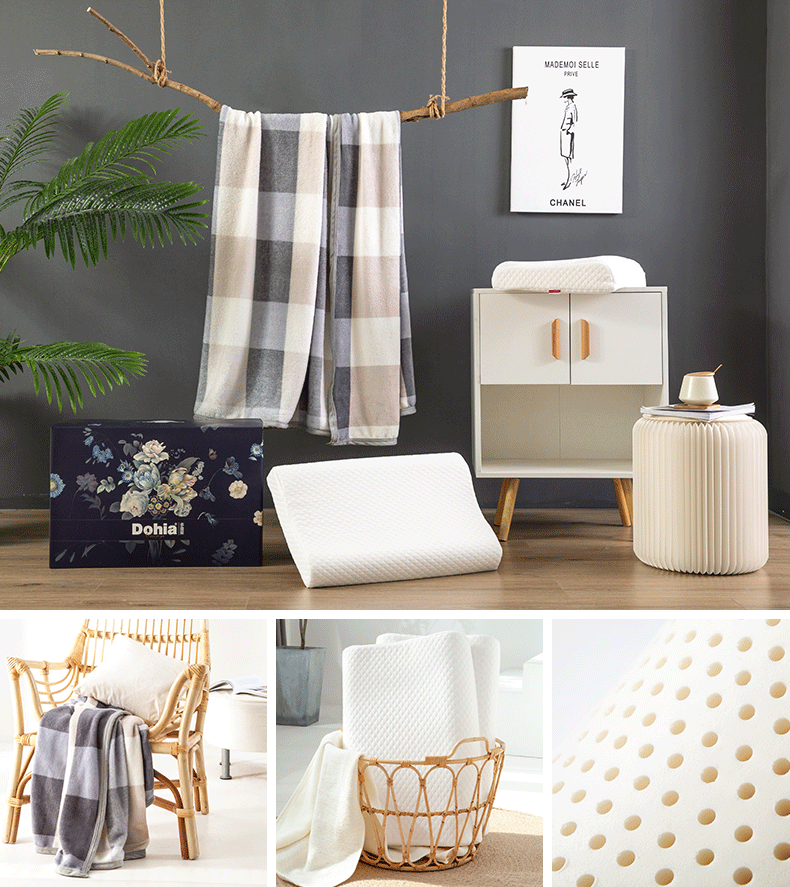 多喜爱家纺 宜眠枕毯套装(乳胶枕*2+法兰绒毯*1)