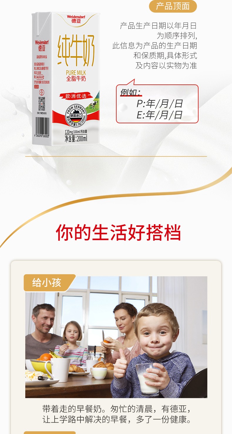 商品名称:德亚欧洲优选(黄金奶源带)全脂纯牛奶200ml*10礼盒 9420079500101