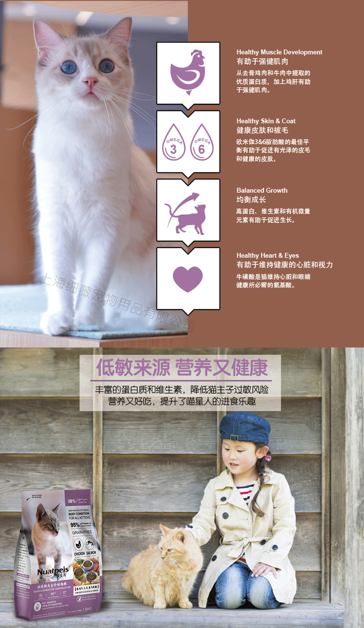 商品名称:纽贝斯烘焙幼猫粮 -鸡肉三文鱼奶酪1360g/袋 6971563330962