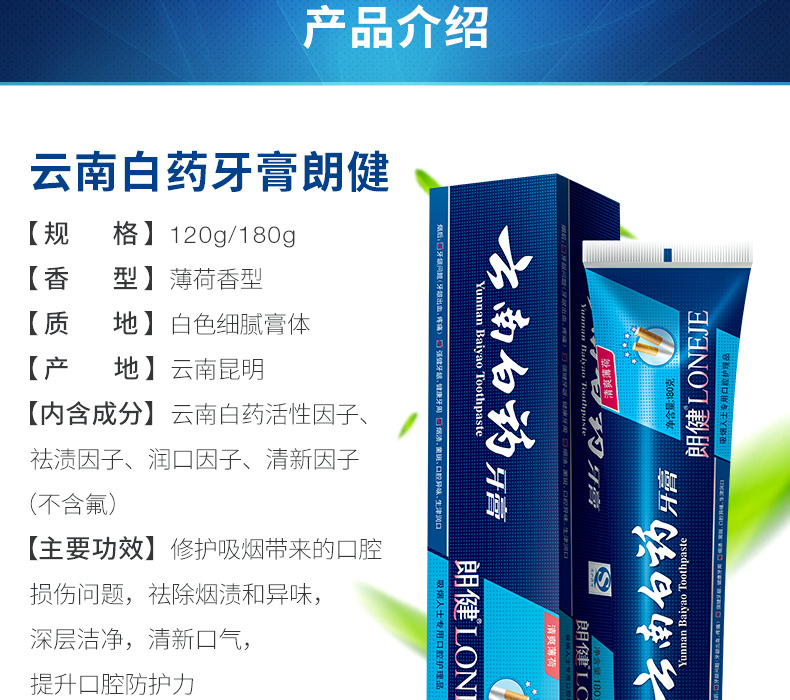 商品名称:云南白药郎健牙膏(清爽薄荷)180g
