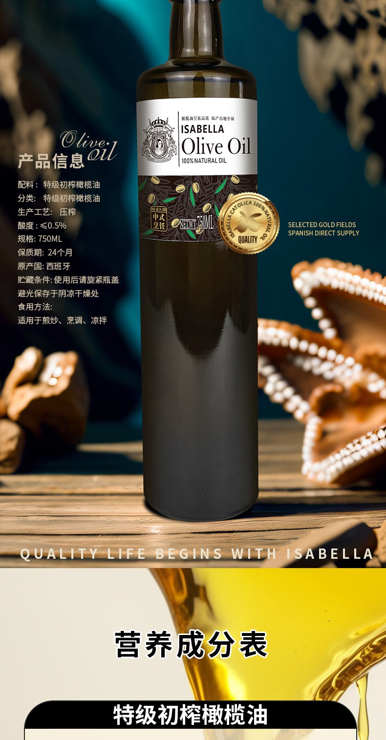 商品名称:伊莎贝拉ISABELLA 特级初榨橄榄油750ml 6957736110227
