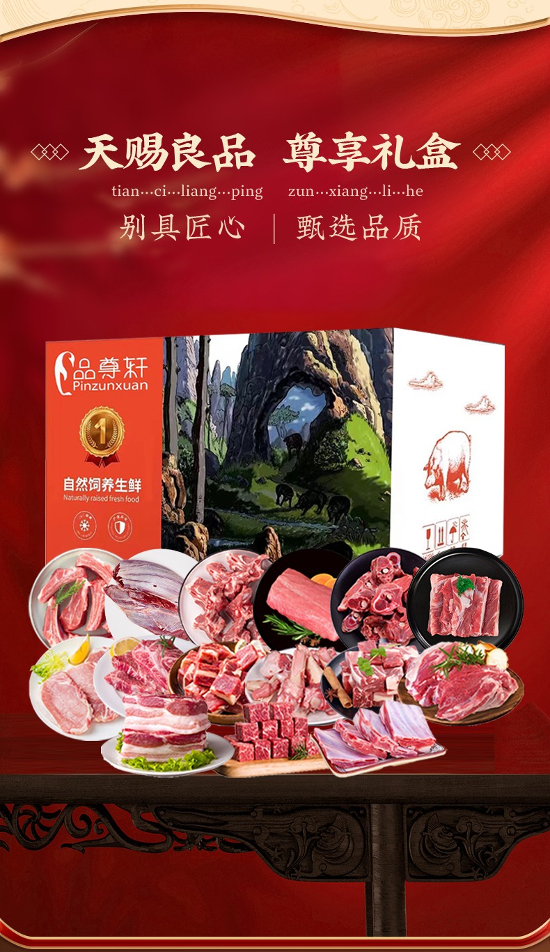 商品名称:品尊轩 猪牛羊组合套餐1288型6900g 6975687972299