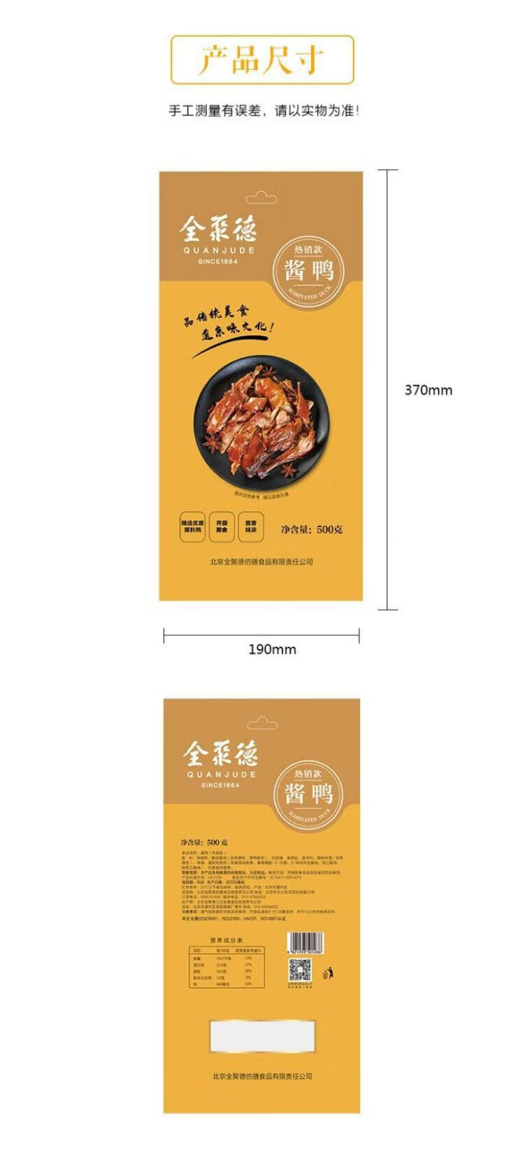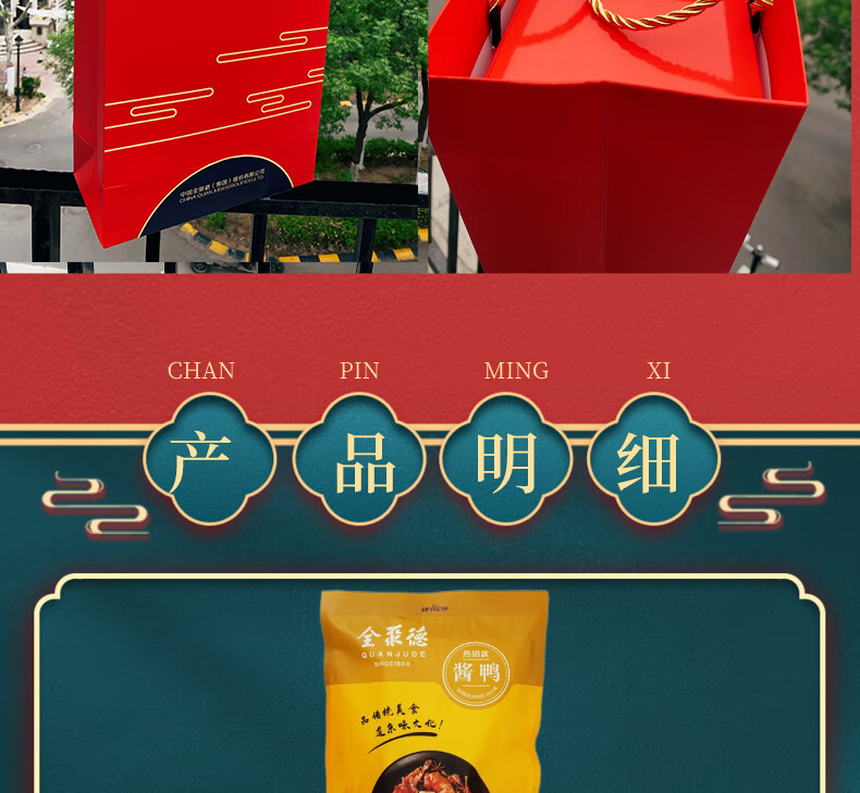 商品名称:全聚德 酱鸭 中华老字号北京特产熟食卤味下酒菜手撕鸭礼盒QF002款880g(食品类)