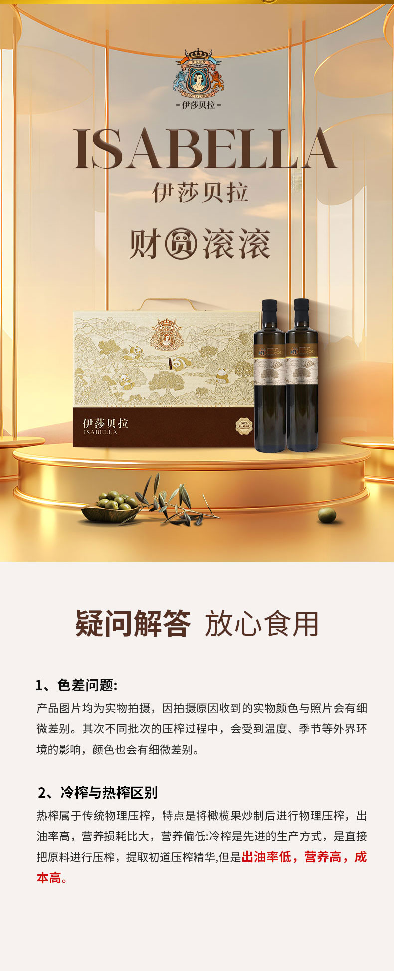 商品名称:伊莎贝拉 ISABELLA-财圆滚滚特级初榨橄榄油500ml*2 偏远另加运费