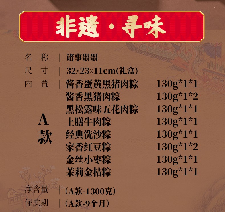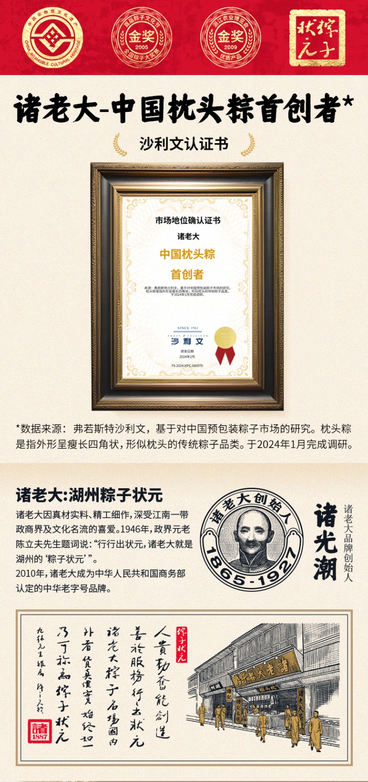 商品名称:诸老大 诸事朤朤枕头粽礼盒A款1300g 粽子