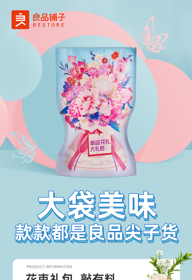 商品名称:良品铺子 幸运花礼花束大礼包398型2010g 6976655860037