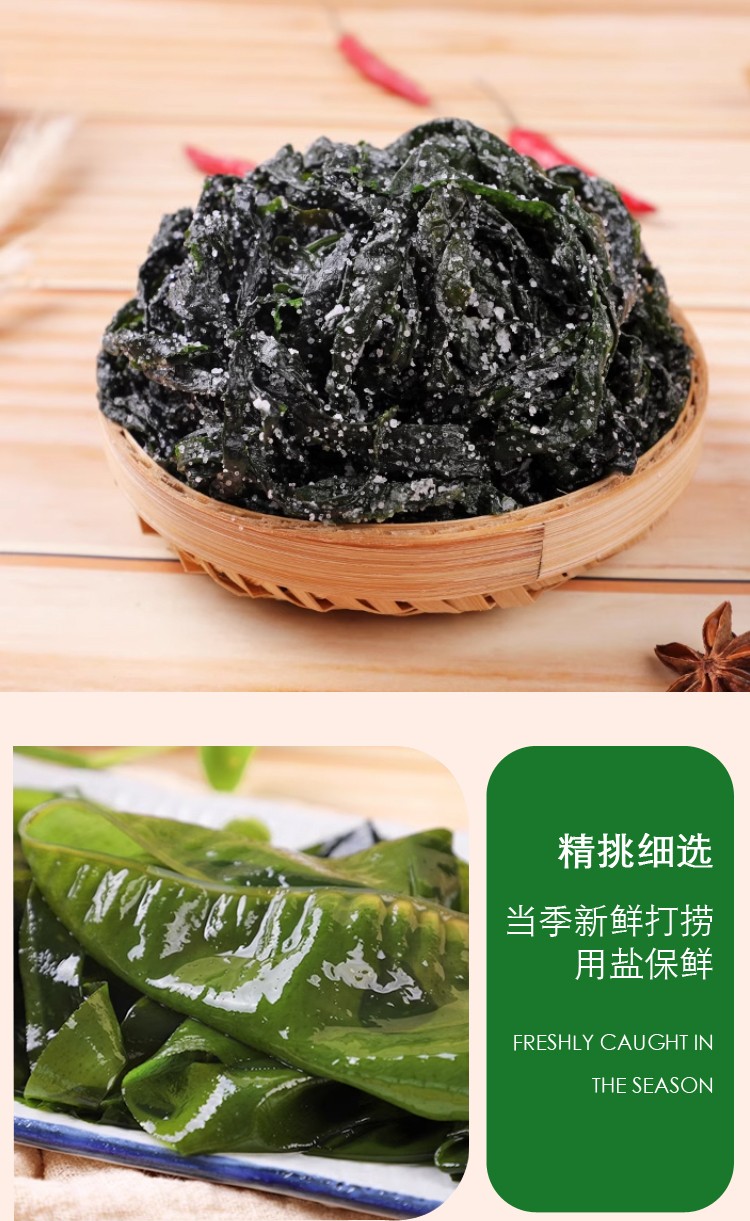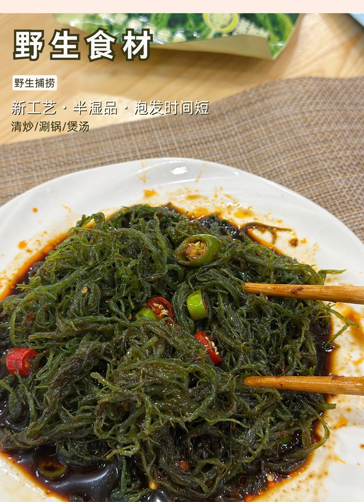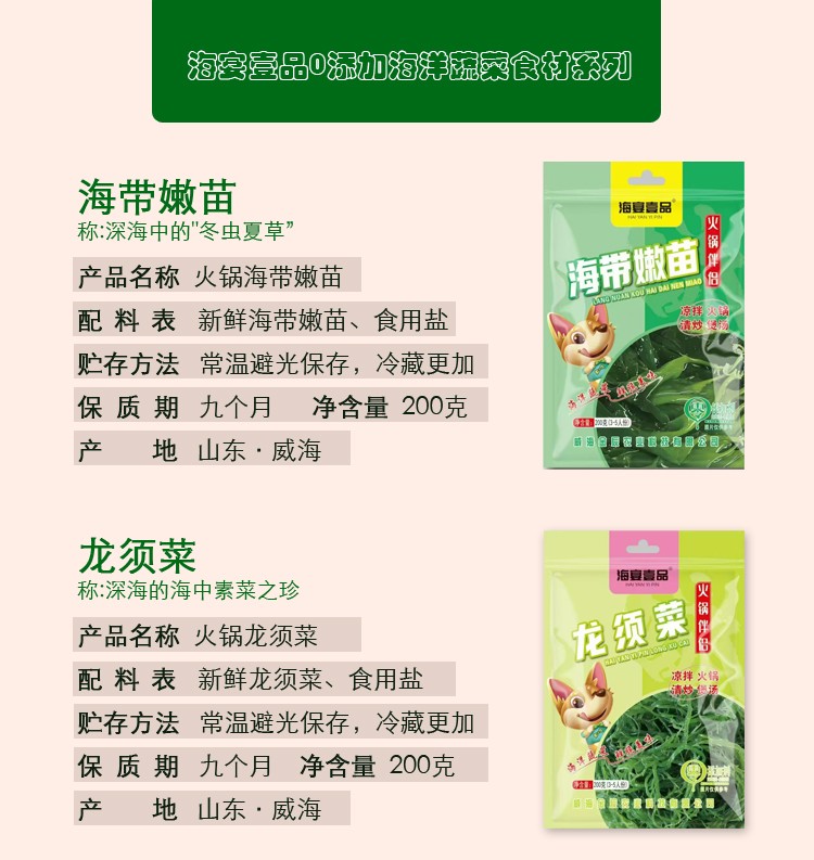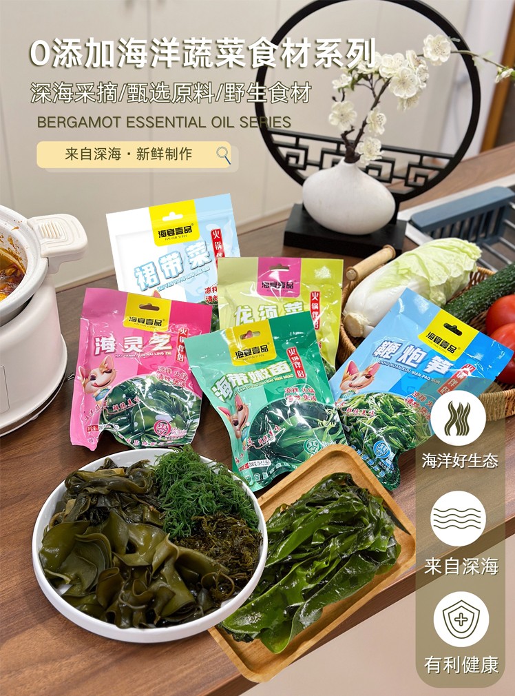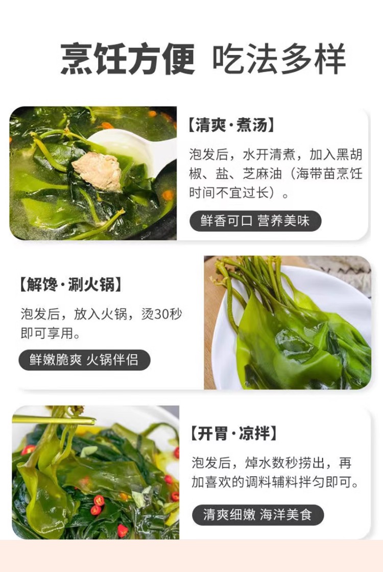 商品名称:海宴壹品0添加0脂肪海菜组合(海带嫩苗+海灵芝+龙须菜各1袋+裙带菜2袋共5袋)【海菜大全实惠组合】
