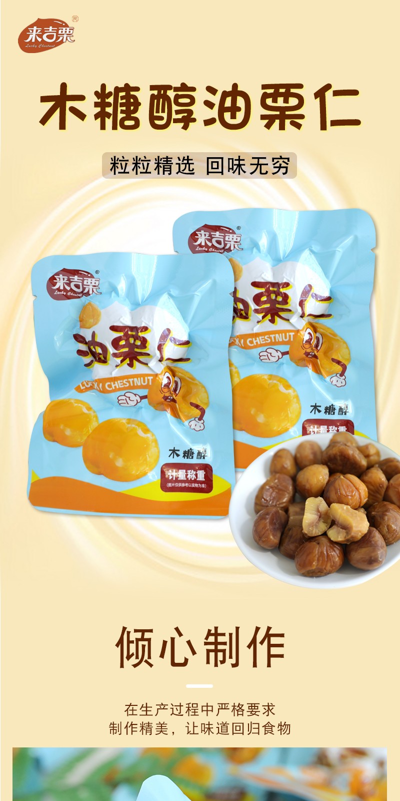 商品名称:来吉栗木糖醇油栗仁200G*3袋【沙地平原板栗】潍坊特产 地标产品 偏远另加运费