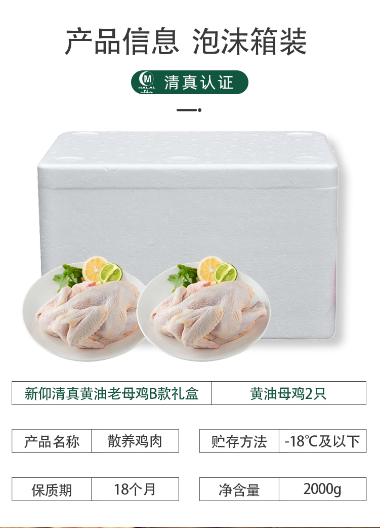 商品名称:新仰清真黄油老母鸡B款2000g