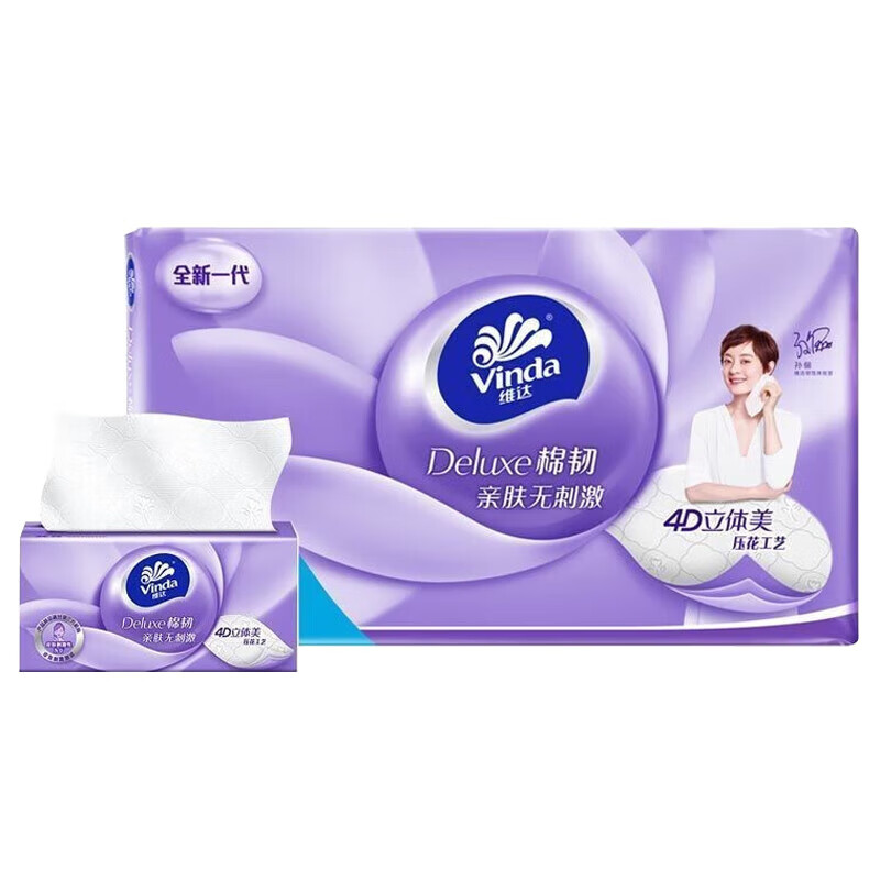 维达棉韧系列抽取式纸面巾100抽3层*12包 V2866 '6901236345313