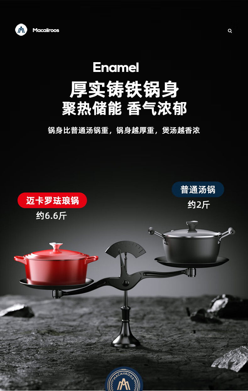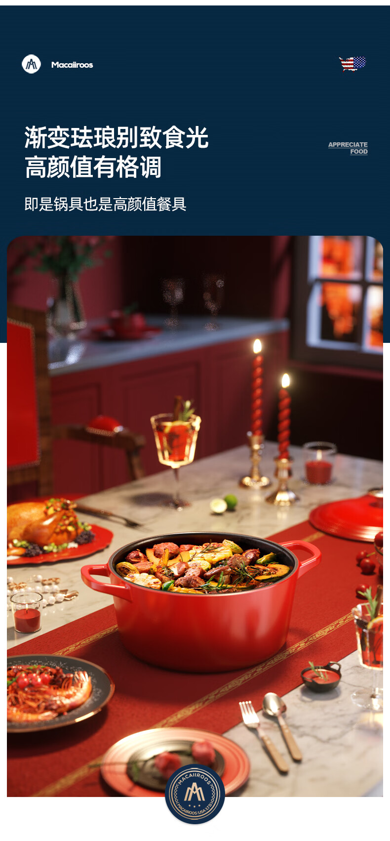 迈卡罗汤锅双耳炖肉锅煲汤锅珐琅铸铁锅臻彩珐琅锅MC-T22T18