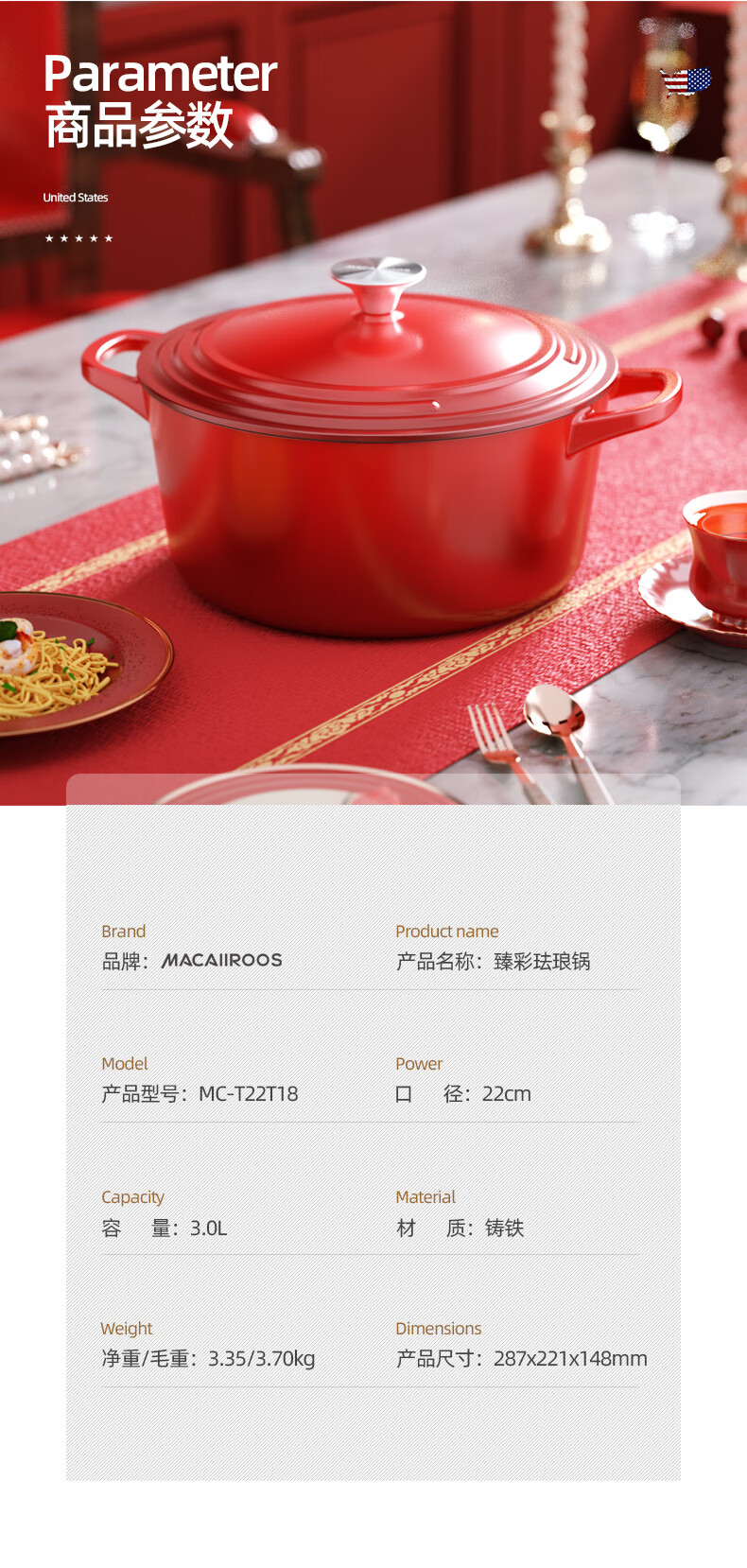 商品名称:迈卡罗汤锅双耳炖肉锅煲汤锅珐琅铸铁锅臻彩珐琅锅MC-T22T18