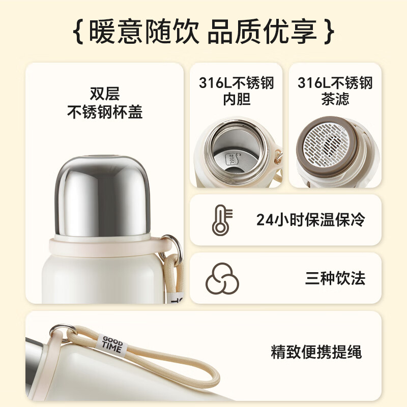 苏泊尔(SUPOR)保温杯不锈钢保温水杯子便携男女士学生大容量 杏白/茱萸粉-680ml KCV68BG10
