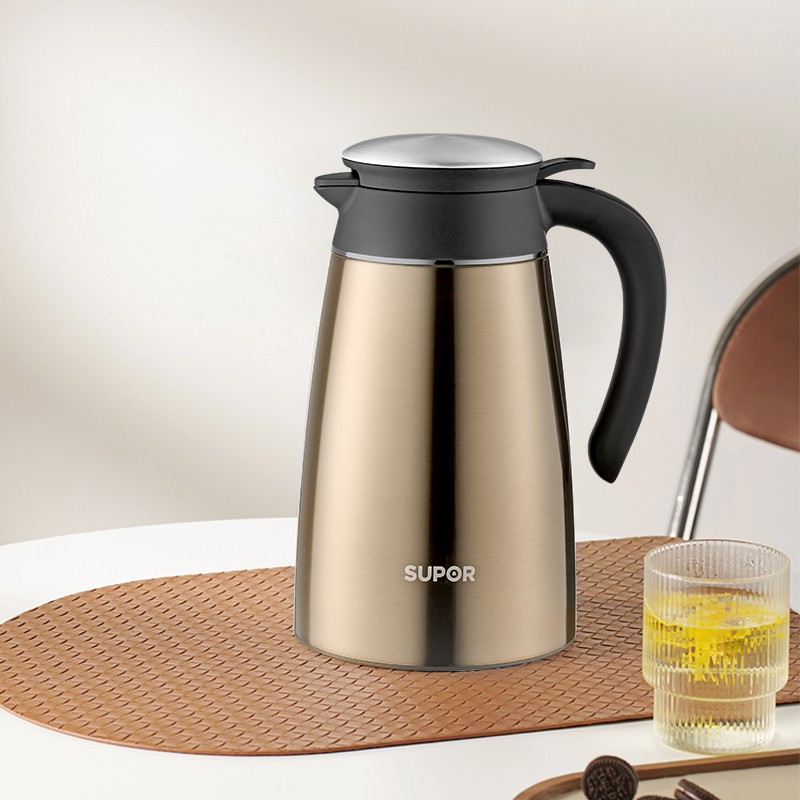 苏泊尔家用办公室大容量热开水保温暖瓶不锈钢保温壶2L摩卡金KC20AP1 6950885582662