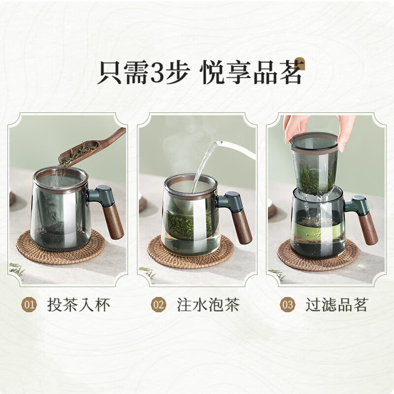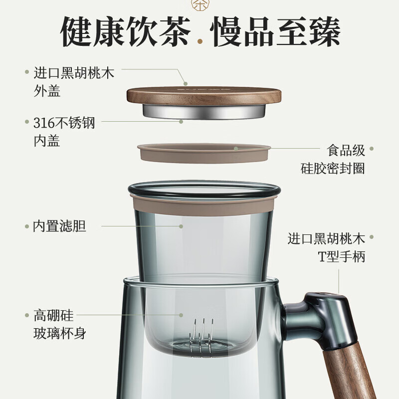苏泊尔(SUPOR)玻璃茶水杯茶水分离泡茶杯加厚耐热办公室茶道杯茶具喝茶把手杯子 【316不锈钢内盖】壶嘴款470ml KCG47AW10 6950885528073