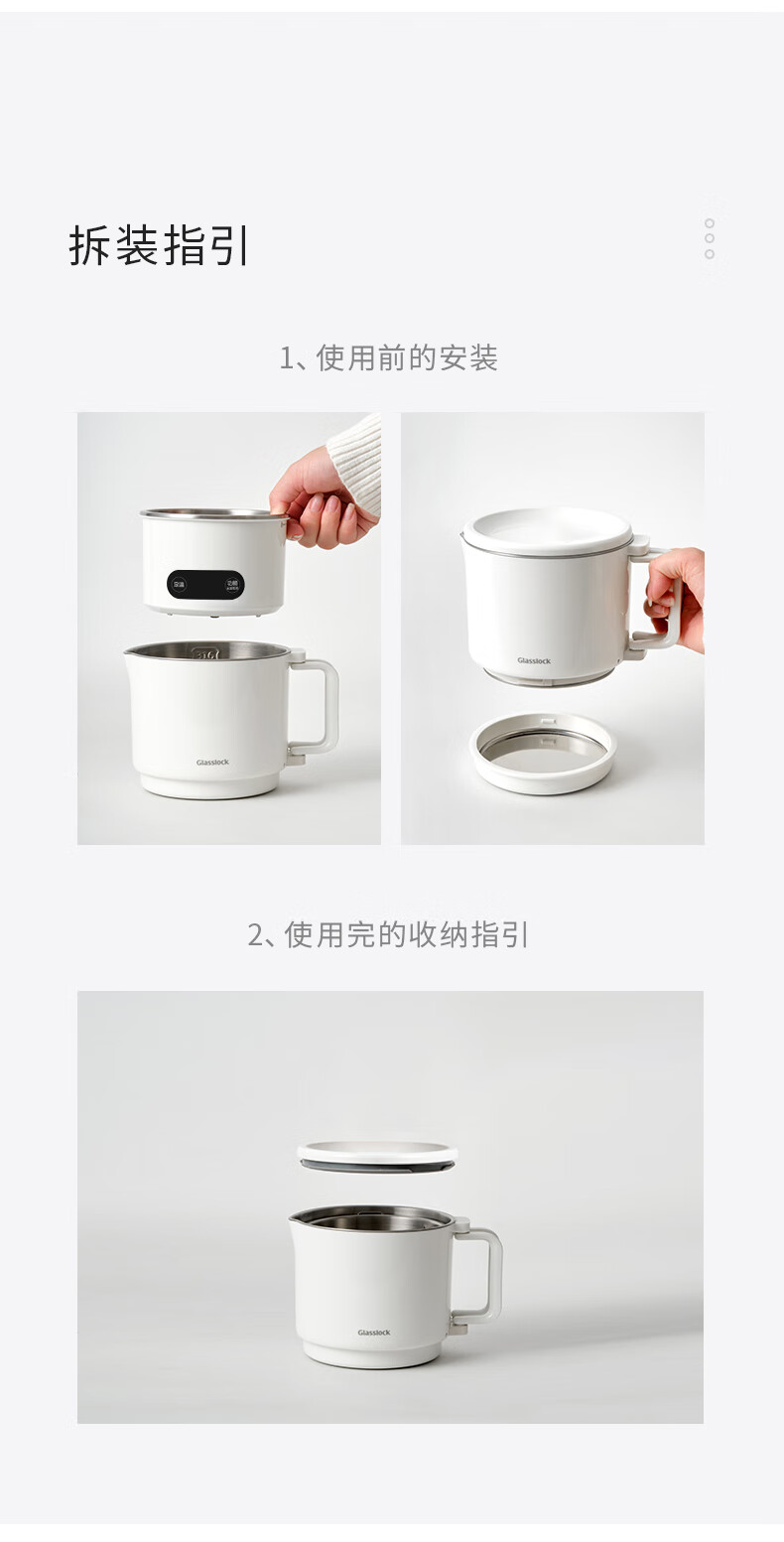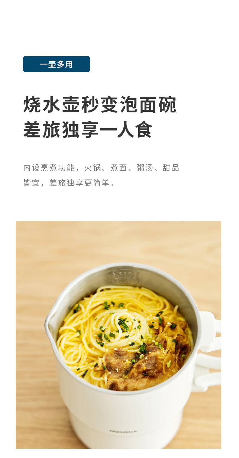商品名称:GLASSLOCK便携式烧水壶 电热折叠水壶 316不锈钢周末假期旅行出国出差住酒店养生壶学生宿舍小煮锅泡面杯 0.7L GE-TH06WH-W 6976852521748