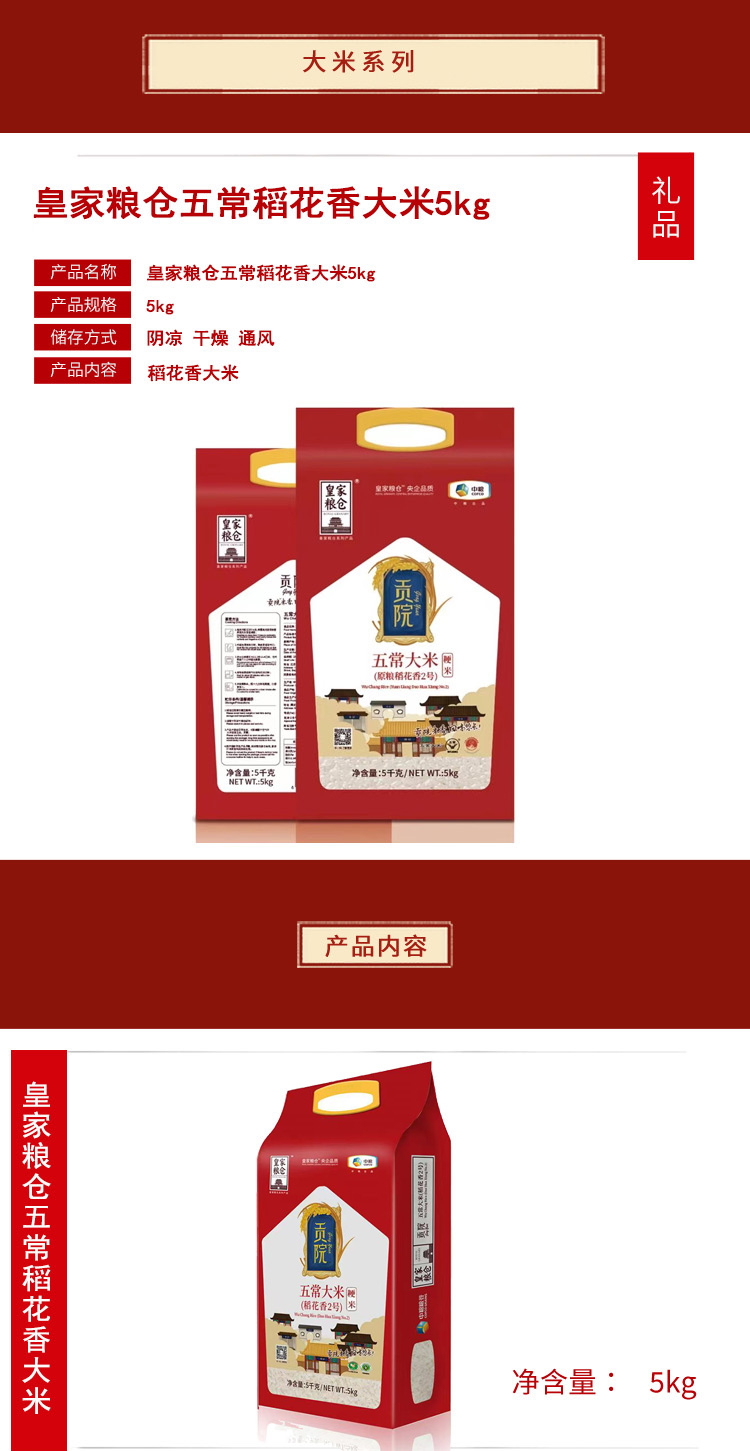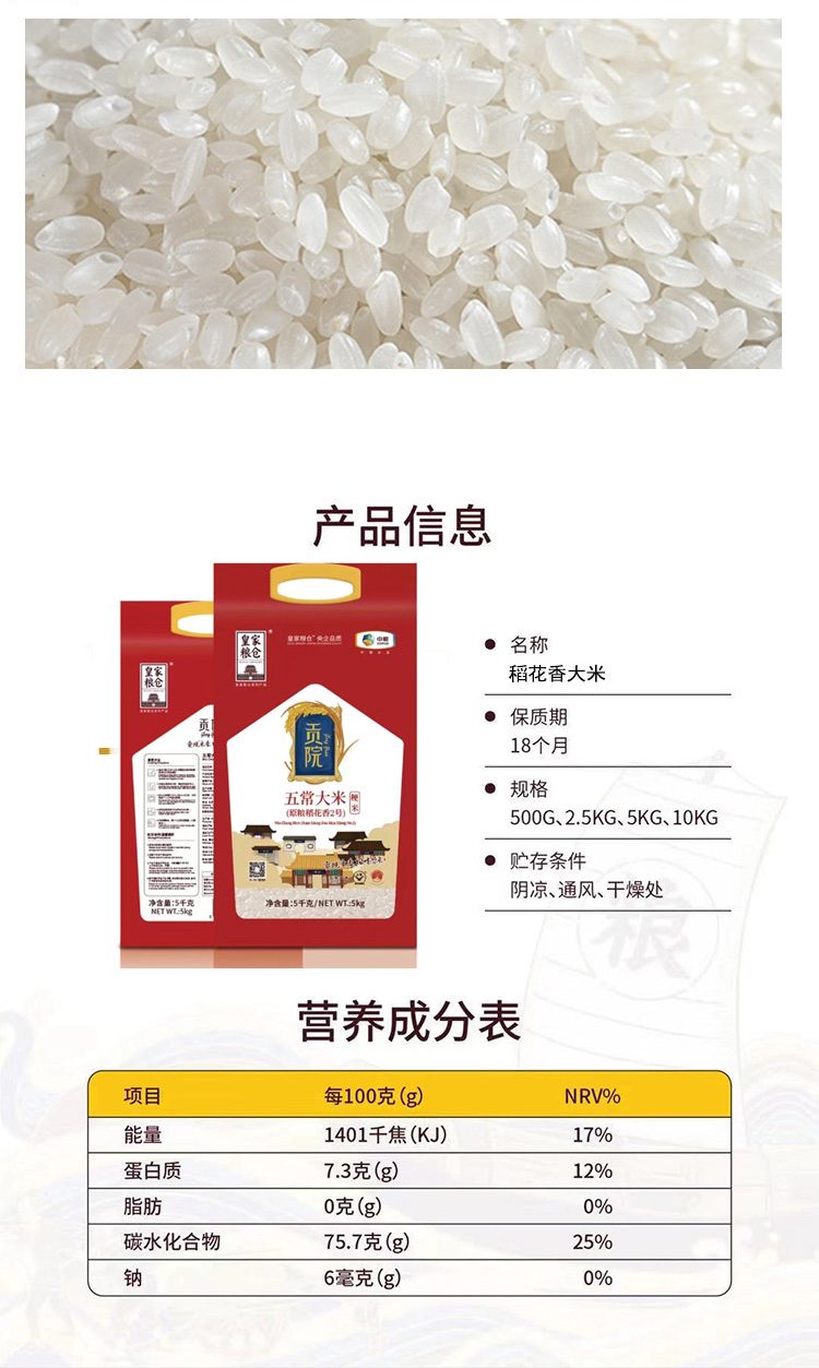 商品名称:中粮皇家粮仓五常稻花香大米5kg 6944910329704