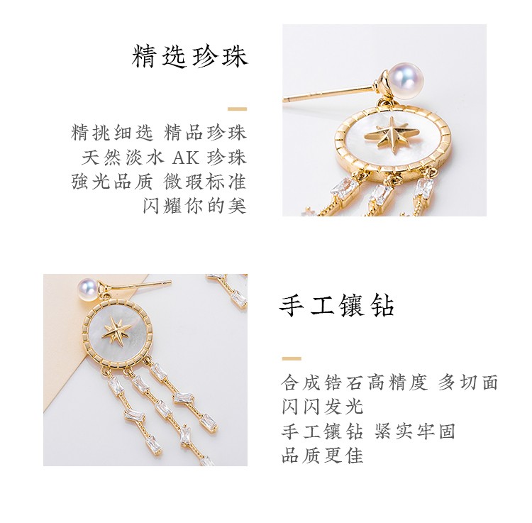 商品名称:法国百年品牌奥利维拉 珍珠包金TH13耳饰星光流苏 淡水AK珍珠