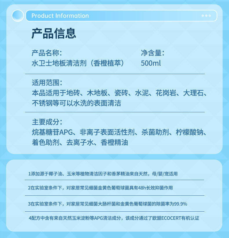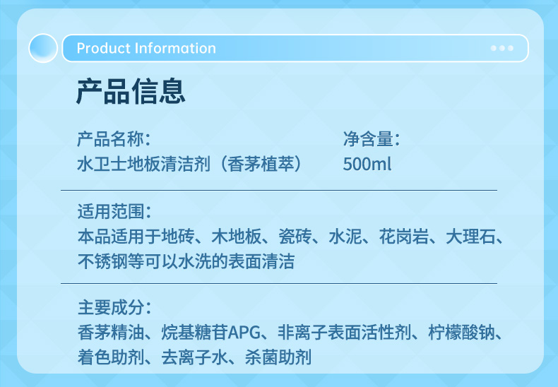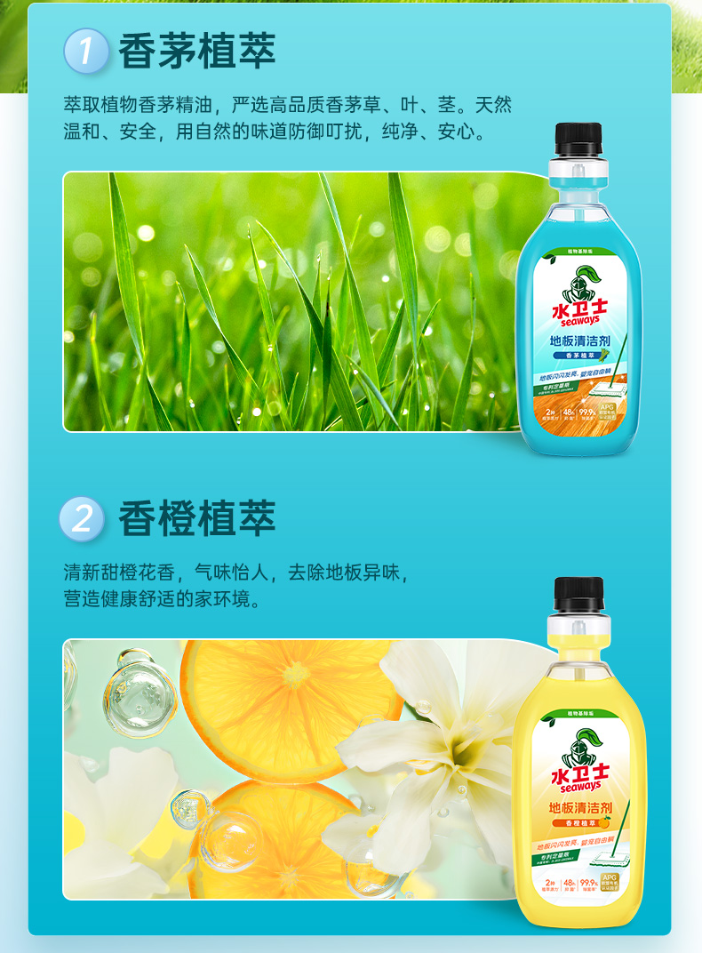 水卫士 地板清洁剂(香茅)500ml/瓶 6973688402883 新疆西藏另加运费