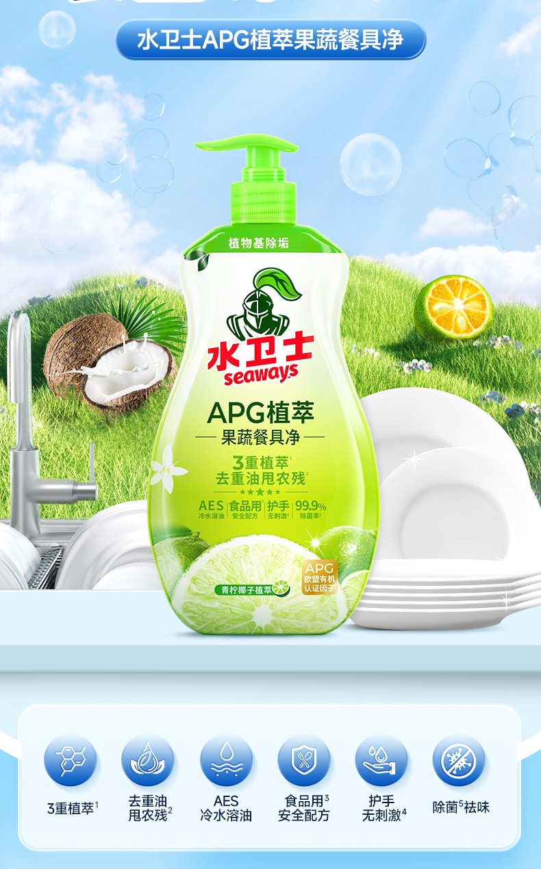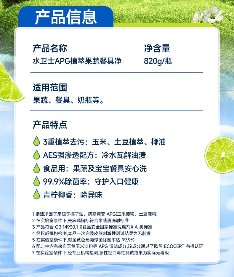 商品名称:水卫士 植萃果蔬餐具净-带喷头820g/瓶 6973688404368 新疆西藏另加运费